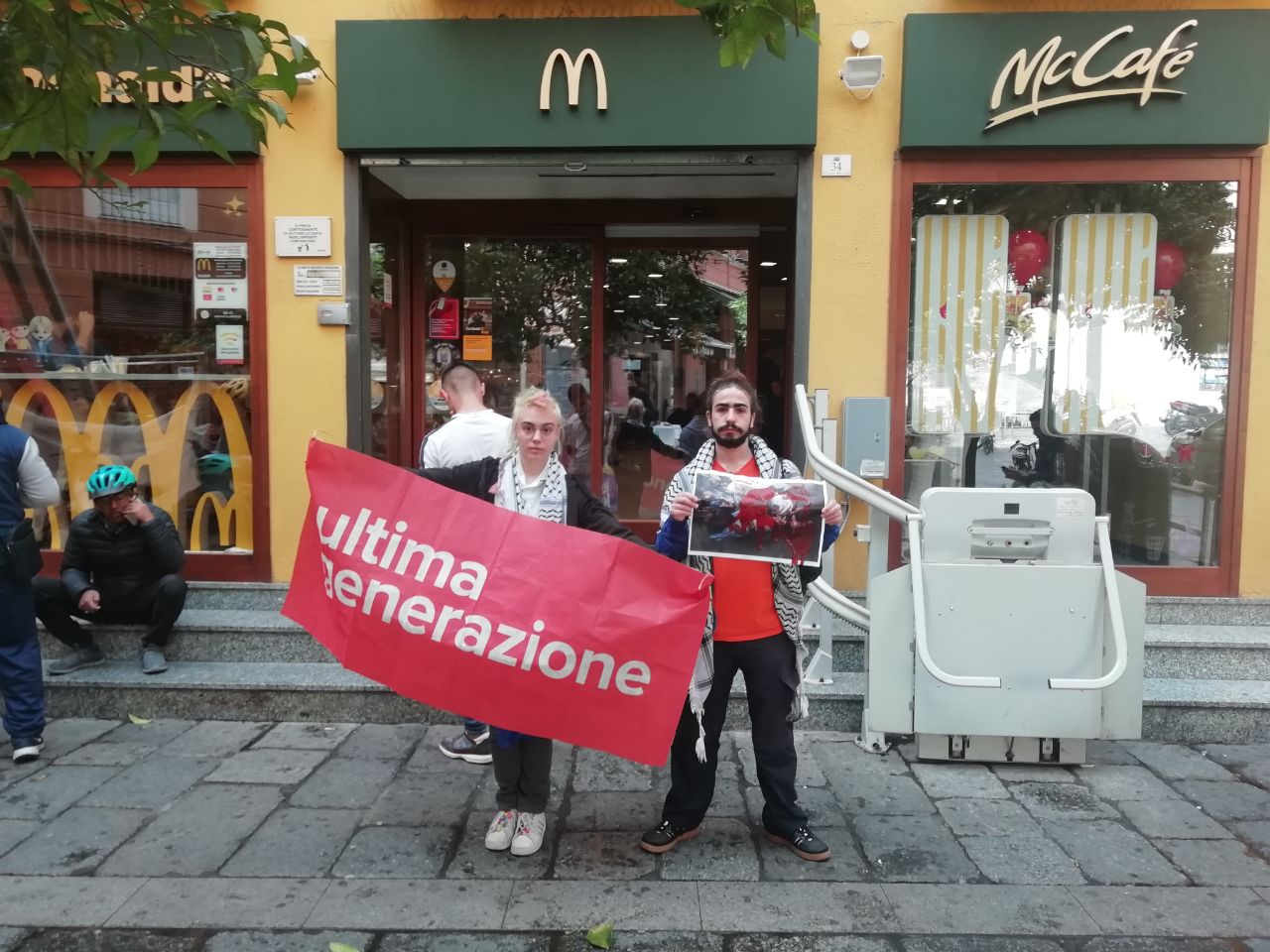 Parte la campagna locale di Ultima Generazione a Cagliari: McDonald’s Baidindi, ovvero “McDonald’s sparisci”. Oggi intorno alle ore 13.00, tre persone aderenti alla campagna “Il Giusto Prezzo” di Ultima Generazione, sono entrate all’interno del McDonald’s di Cagliari in via Dettori 34.