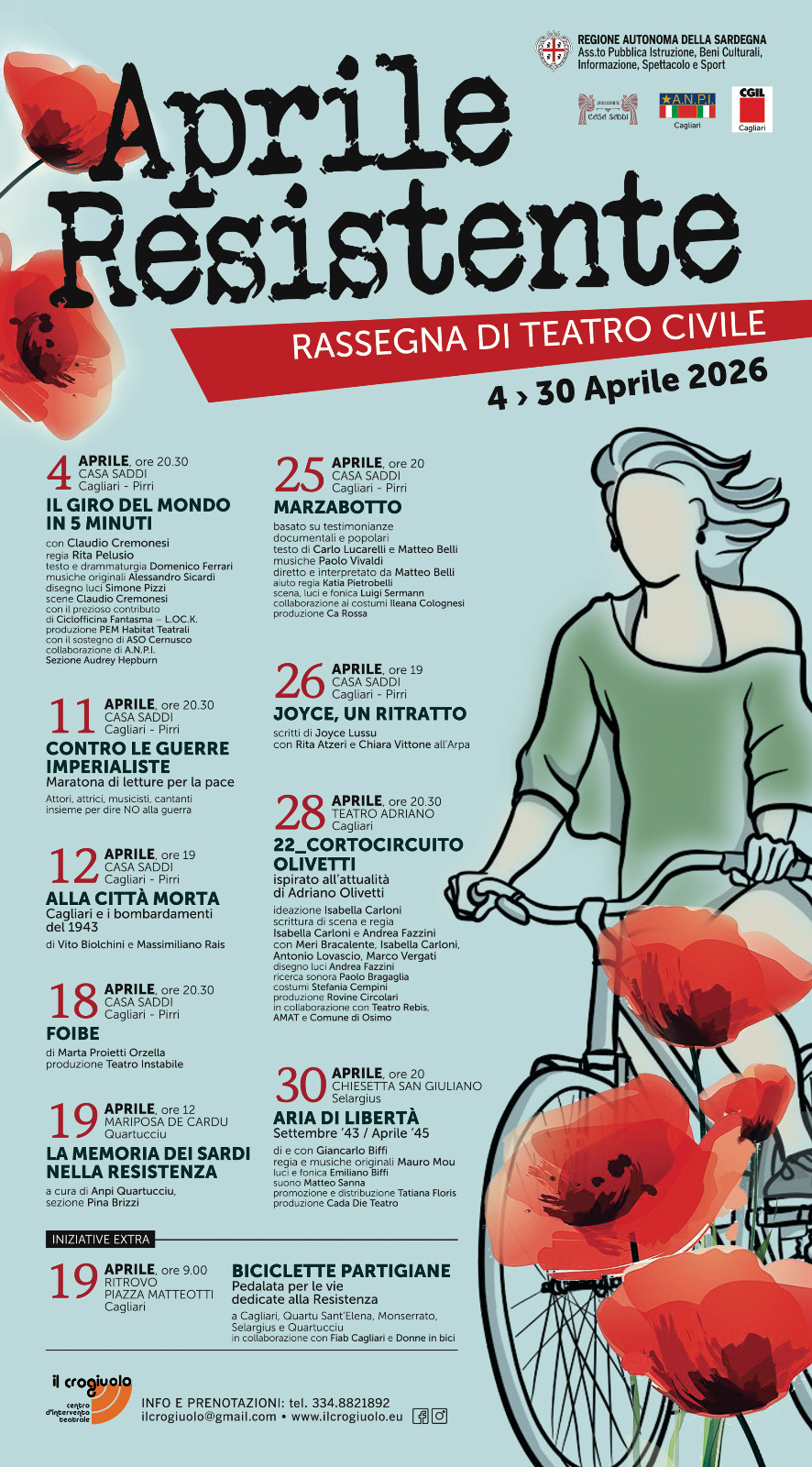 Il programma è ricco e scuote memoria e le anime con i ricordi dei bombardamenti a Cagliari il 12 aprile, le foibe, Marzabotto, Olivetti, Joyce Lussu.