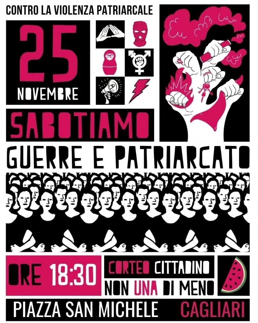 Questa sera, 25 novembre, il corteo cittadino di Non Una di Meno inonderà le strade di Cagliari per una manifestazione contro la violenza patriarcale, il concentramento è previsto alle ore 18.30 in Piazza San Michele.