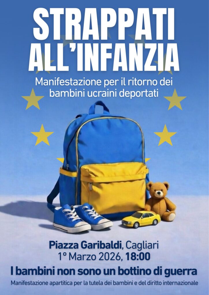 Un appello che parte dalla società civile e si rivolge a tutte le forze politiche, senza distinzioni di appartenenza: il primo marzo 2026 Cagliari ospiterà una manifestazione in Piazza Garibaldi per richiamare l’attenzione sul rispetto del diritto internazionale, partendo da una delle sue violazioni più gravi e controverse, il rapimento e la deportazione dei bambini nei conflitti armati.