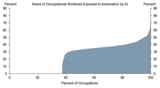 Figura: Due terzi delle attuali professioni potrebbero essere parzialmente automatizzate dall’intelligenza artificiale [Fonte: Goldman Sachs Global Investment Research]